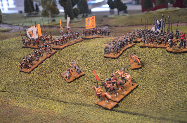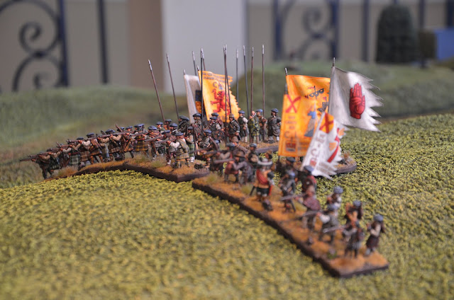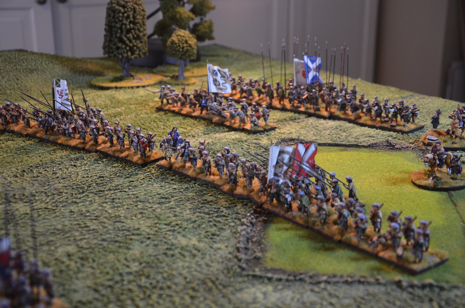The Covenanters are in a strong position along the crest of a steep embankment (the Justice Mills Brae) which should be classed as Rough Terrain (for Pike & Shotte).