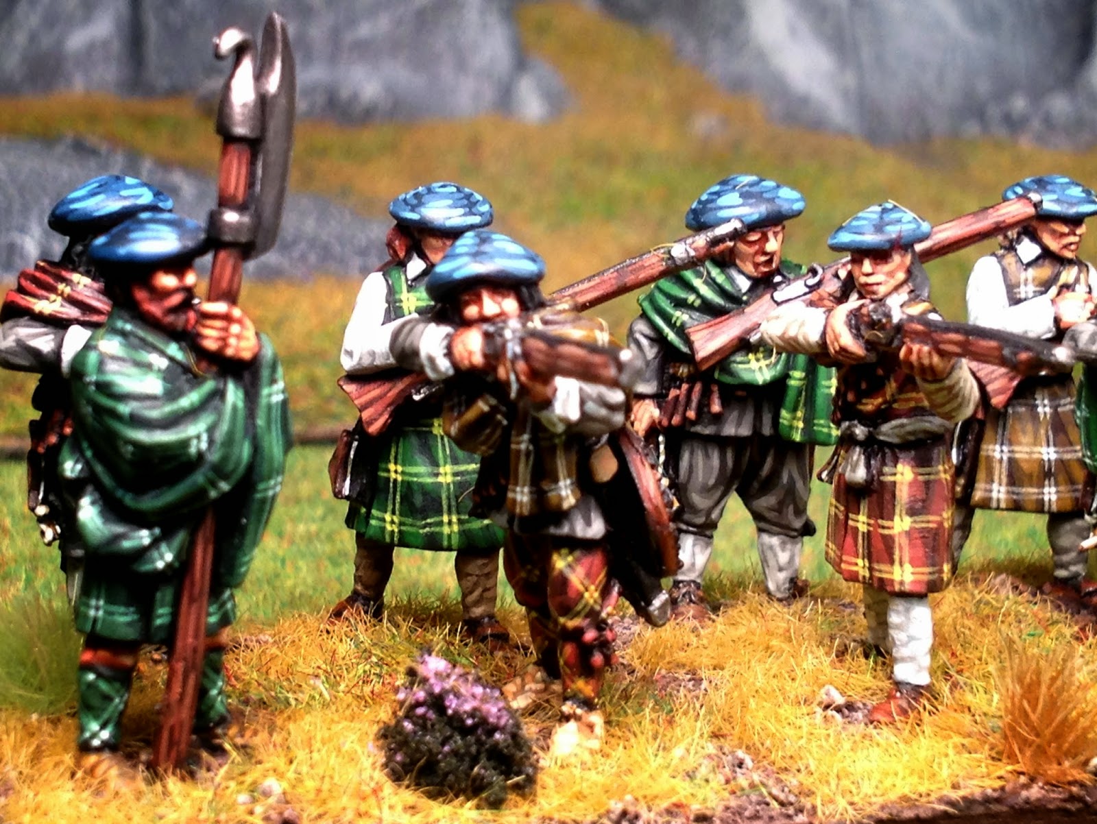 The Covenanter army had some artillery, which was captured during the battle and turned on them by Royalists. Defeated or captured artillery can be re-used by the new owners (for this battle only). Highland clansmen start the battle with no muskets and improvised weapons. If they break any Covenanter regiment they gain their equipment.